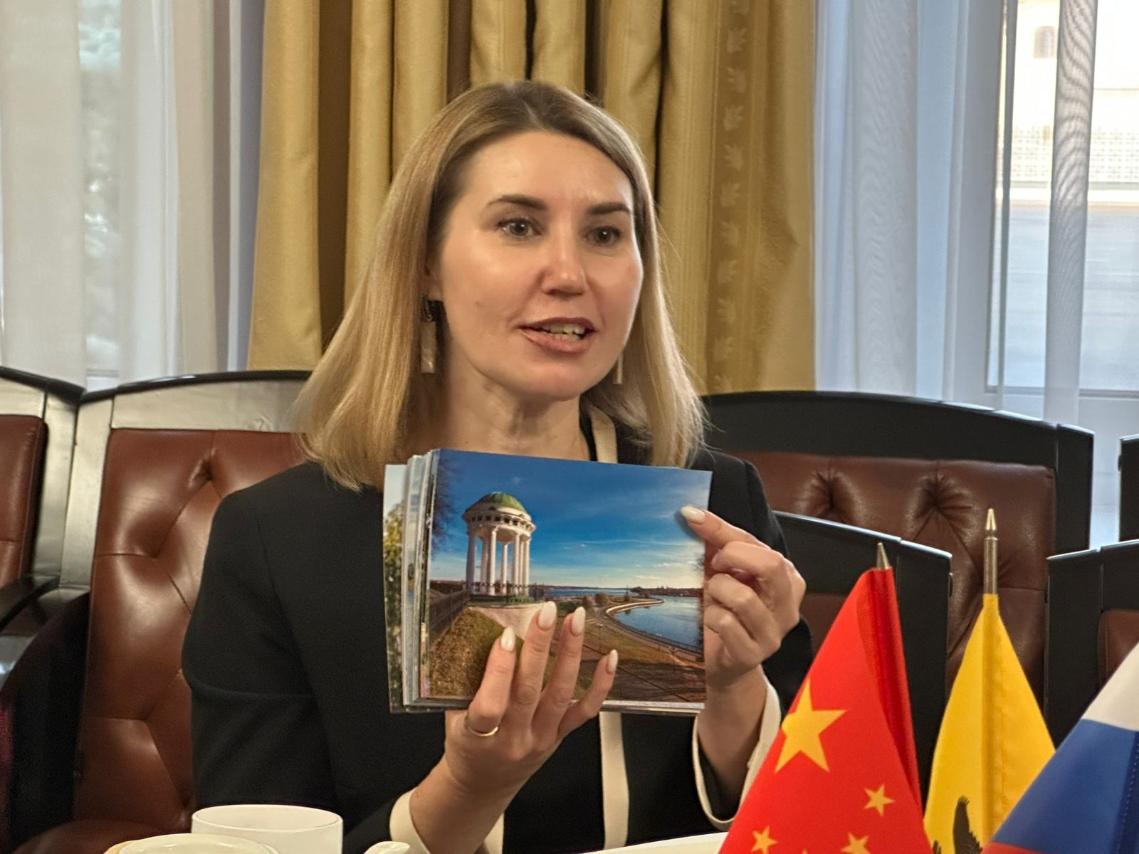10月9日,中央歌剧院艺术家代表团访问俄罗斯雅罗斯拉夫尔州政府,并与州文化部长伊琳娜·伊万诺夫娜·希尔绍娃(Irina Ivanovna Shirshova)举行工作交流。双方围绕中俄歌剧艺术合作、文化互访机制及青年艺术人才培养等议题进行了建设性会谈,为后续演出活动落实细节。